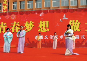 該校把特色教育作為發(fā)展的名片,推出“一班一品一特色”活動(dòng)。學(xué)校建立以班級(jí)為單位的社團(tuán)組織,并細(xì)分為體育類、舞蹈類、樂器類、美術(shù)類四大類別,共70個(gè)社團(tuán)。比如:美工社團(tuán)制作漢服進(jìn)行表演,每一次都讓在場(chǎng)的觀眾潸然淚下,為自己是一個(gè)漢唐中華子孫而驕傲,為著漢唐服裝而自豪。學(xué)校出版了《求真大課堂》《走在成長(zhǎng)的路上》《花季無悔》《中學(xué)生科技創(chuàng)作》《班主任德育思想錄》《國學(xué)之蘊(yùn)》《家和萬事興》《共創(chuàng)一個(gè)夢(mèng) 和韻文昌之家校共建》《“文昌杯”文明我先行 共筑一個(gè)夢(mèng)》主題征文作文選等校本教材。為豐富校園文化生活,學(xué)校邀請(qǐng)中國政法大學(xué)的霍登科,歷史文化學(xué)者王少清,青少年心理教育專家張海選、萬禮彬,周口市中心醫(yī)院婦產(chǎn)科主任楊莉,河南國學(xué)院的施柳貞、王福琪、楊茹梅以及國內(nèi)外優(yōu)秀大學(xué)生對(duì)學(xué)生進(jìn)行國學(xué)誦讀和教育、演講比賽、法制教育、夢(mèng)想目標(biāo)教育、青春期心理和生理教育等活動(dòng)。在該校首屆“做大成教育 展青春夢(mèng)想”文化藝術(shù)節(jié)活動(dòng)中,有一項(xiàng)活動(dòng)叫珍藏十年“心愿瓶”,當(dāng)滿載學(xué)生夢(mèng)想的心愿瓶準(zhǔn)備珍藏時(shí),晴天出現(xiàn)了彩虹,讓在場(chǎng)的領(lǐng)導(dǎo)、家長(zhǎng)、學(xué)生很驚嘆,說文昌中學(xué)的學(xué)生目標(biāo)遠(yuǎn)大,定有大才出現(xiàn)。這些有意義的活動(dòng)對(duì)廣大未成年人的身心健康起到了很好的促進(jìn)作用。