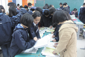 該校將課堂名字定為“求真大課堂”,以“真”字作為學(xué)校一切教育教學(xué)和管理的衡量標(biāo)準(zhǔn)。朱貴華說,求真就是要真教、真學(xué)、真嚴(yán)、真愛、真實(shí)、真會(huì)。為提高課堂教學(xué)效果,該??偨Y(jié)出一套獨(dú)特的課堂教學(xué)方法——“七音和鳴”。分管教學(xué)工作的副校長(zhǎng)徐其運(yùn)用“1234567”,即哆來咪發(fā)唆拉西”來詮釋“七音和鳴”法?!?”就是一個(gè)學(xué)習(xí)目標(biāo);“2”就是提前兩分鐘進(jìn)班,布置2個(gè)任務(wù)(出示目標(biāo)、檢查學(xué)情);“3”就是準(zhǔn)備3個(gè)本子,即學(xué)情檢效本、跟蹤本、糾錯(cuò)本;“4”是4個(gè)維度考評(píng),即高速度、準(zhǔn)確度、干凈度、參與度;“5”是5個(gè)跟蹤,即節(jié)跟蹤、日跟蹤、周跟蹤、月跟蹤、學(xué)期跟蹤,堅(jiān)持“抓緊跟蹤不放松、我在文昌必成功”的教育信念;“6”是6個(gè)環(huán)節(jié),即激情導(dǎo)入、自研自探、合作探究、展示質(zhì)疑、師生點(diǎn)評(píng)、當(dāng)堂檢測(cè);“7”是7個(gè)評(píng)價(jià),即教師的教案、學(xué)生的學(xué)案、練案、觀課記錄的每周業(yè)務(wù)評(píng)價(jià)及對(duì)學(xué)生的即時(shí)性、激勵(lì)性、長(zhǎng)效性評(píng)價(jià)。