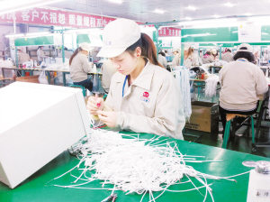 昨日,在三星手機耳機供應(yīng)商日立亞電子淮陽有限公司生產(chǎn)車間,工人們正在生產(chǎn)線上忙碌著?;搓柨h近年來積極實施“工業(yè)強縣、旅游突破、城鄉(xiāng)統(tǒng)籌、四化同步”發(fā)展戰(zhàn)略,不斷調(diào)整工業(yè)產(chǎn)業(yè)結(jié)構(gòu),增加企業(yè)科技含量,以提升產(chǎn)品質(zhì)量和市場競爭力,促進經(jīng)濟轉(zhuǎn)型升級。(記者 侯俊豫 攝)