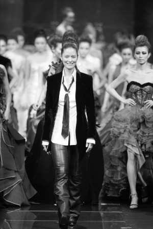 在模特生涯中,她打交道最多的就服裝設計師,他們?yōu)樗矿w裁衣,設計出一款款令人贊嘆的霓裳羽衣,讓她在T臺上儀態(tài)萬方、光彩照人?!拔易顨J佩的就是那些幕后大師,希望能成為像他們那樣的人?!瘪R艷麗說, 1995年她獲得國際名模后,就萌生了做服裝設計師的念頭,“有了模特這樣一個經(jīng)歷,我又多了一層對服裝設計的理解,我認為它將是我模特生涯的一個延續(xù),是可以干一輩子的事業(yè)?!?/P>