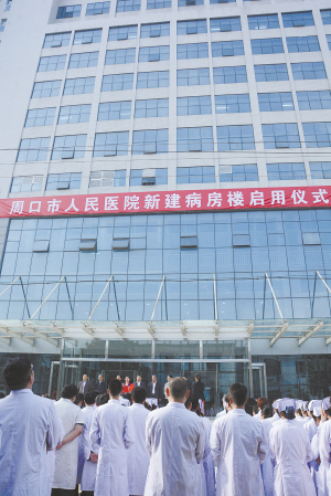 本報訊 4月24日,周口市人民醫(yī)院新病房樓舉行啟用儀式,標(biāo)志著這一重點民生工程即日起正式投入使用(左圖)。新病房樓的投入使用,將大大改善人民群眾的就醫(yī)環(huán)境,成為保障人民群眾醫(yī)療健康的一支重要力量。