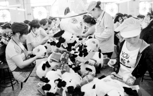 廣西各地就業(yè)呈現(xiàn)“鳳還巢” 廣西靈山縣婦女在生產(chǎn)外銷歐美的兒童玩具(4月29日攝)。近年來(lái),廣西各地婦女就業(yè)呈現(xiàn)“鳳還巢”局面,不少在廣東、福建、浙江等地打工的人員,利用所學(xué)技能回鄉(xiāng)創(chuàng)業(yè)。抓住這一契機(jī),廣西投入十幾億元建設(shè)200多個(gè)“巾幗科技示范基地”,為廣大婦女創(chuàng)業(yè)、就業(yè)搭建平臺(tái)。新華社發(fā)