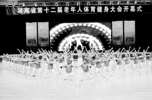 省十二屆“老健會(huì)”開(kāi)幕式現(xiàn)場(chǎng)節(jié)目表演。(記者 沈湛 攝)