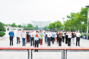 5月15日上午,川匯區(qū)政協(xié)和黨外知識分子聯(lián)誼會聯(lián)合開展“崇尚道德、恪守誠信”宣誓暨簽名活動。大家在新區(qū)廣場誠信鼎前鄭重宣誓:“以至誠之心,待人處世;以至誠之德,律言律行……”最后在誠信條幅上簽名。蘇寧 王皓 攝