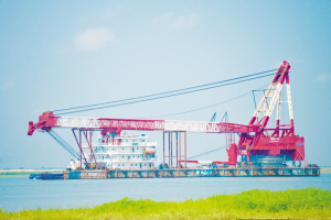 中鐵大橋局千噸起重船抵達(dá)孟加拉國 這是5月20日在孟加拉國帕德瑪大橋項(xiàng)目施工區(qū)域拍攝的中鐵大橋局千噸起重船。經(jīng)歷一個多月的海上航行,從青島起航的中鐵大橋局“瑞航05”起重船于5月19日抵達(dá)孟加拉國帕德瑪大橋施工區(qū),為大橋建設(shè)提供重要保障。新華社發(fā)