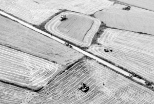 這是5月25日在江蘇省淮安市盱眙縣桂五鎮(zhèn)航拍的麥?zhǔn)宅F(xiàn)場(chǎng)。近日,我國(guó)夏糧主產(chǎn)區(qū)小麥作物自南向北陸續(xù)開鐮收割。