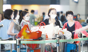 韓國又確診中東呼吸綜合征患者 5月30日,在韓國仁川國際機場,佩戴口罩的乘客排隊等候辦理登機手續(xù)。韓國保健福祉部30日例行通報說,當日新確診了1例中東呼吸綜合征患者。至此,韓國國內(nèi)確診的患者已增至12人,另有一名韓國患者在中國被確診。新華社發(fā)