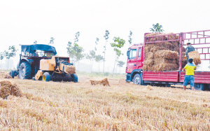 今年“三夏”,沈丘縣堅(jiān)持做到進(jìn)地作業(yè)機(jī)械全部安裝秸稈粉碎還田裝置,一律執(zhí)行“低留茬、細(xì)粉碎”作業(yè),對(duì)不符合作業(yè)要求的機(jī)械,及時(shí)制止并督促就地整改,達(dá)不到標(biāo)準(zhǔn)要求的地塊,責(zé)成村級(jí)組織破茬耕翻,確保秸稈粉碎還田質(zhì)量。圖為付井鎮(zhèn)境內(nèi)一輛安裝秸稈粉碎還田裝置的聯(lián)合收割機(jī)正在田間作業(yè)。(肖飛 攝)