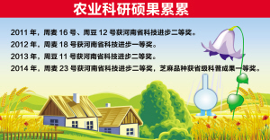 目前,全市農(nóng)業(yè)科研系統(tǒng)包括1個市級農(nóng)科院和5個縣級農(nóng)科所。全市農(nóng)科系統(tǒng)現(xiàn)有干部職工347名,其中專業(yè)技術人員161名,其中有研究員16名,副研究員29名,博士、碩士22名,享受國務院特殊津貼專家15名,省優(yōu)秀專家3名,省級學術技術帶頭人6名,市級優(yōu)秀專業(yè)技術人才24名。從以上數(shù)據(jù)可以看出,我市農(nóng)業(yè)科研人員中,專家和學科帶頭人數(shù)少,急缺博士、碩士等高層次農(nóng)業(yè)科技人才。即使在這樣的情況下,周口農(nóng)業(yè)科研人員也沒有懈怠,而是加倍付出,用自己的智慧和汗水,培育出了多個小麥和大豆新品種,獲得了一項又一項科技成果獎。五年來,市農(nóng)科院獲得的河南省科技進步獎數(shù)量穩(wěn)居河南省地市農(nóng)科院前列,主要是集中在小麥育種和大豆育種上。這主要是與我市小麥、大豆育種居國內(nèi)領先水平?jīng)Q定的。特別是小麥育種已成為全國優(yōu)勢學科,相繼育成30多個小麥新品種,其中12個通過國家審定,13個通過河南省審定,創(chuàng)育了享譽全國的“周麥”品牌,市場占有率高、美譽度好。2015年周麥系列品種在黃淮麥區(qū)累計推廣面積近3000萬畝,其中在河南省推廣2500萬畝,占全省小麥種植面積的28%,占周口小麥種植面積的75%,新增經(jīng)濟效益20多億元,為全省、全市小麥連年增產(chǎn)做出了突出貢獻。