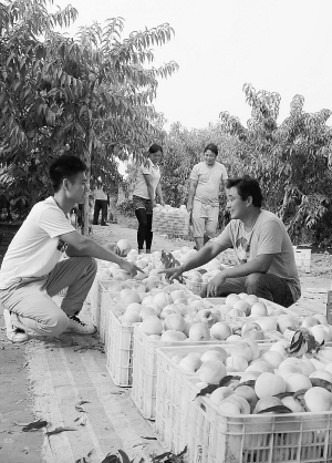 7月4日,扶溝縣江村鎮(zhèn)趙樓村村民正在摘桃出售。近年來,該鎮(zhèn)積極引導農民種植桃、梨、蘋果等優(yōu)質小雜果,有效增加了當地群眾的收入。