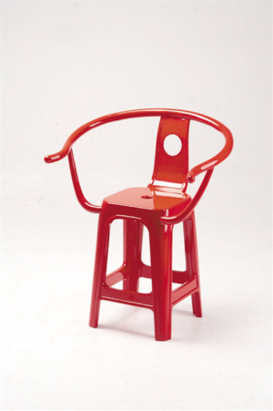臺灣的夜市和大排檔往往讓許多去臺灣旅行的人流連忘返,大排檔里許多簡易的塑料凳子也讓人印象深刻,如果將這款凳子和圈椅結(jié)合起來會(huì)是什么樣子呢?設(shè)計(jì)師吳孝儒的這款圈凳,將幾千年前的圈椅和如今的速食文化融合,從材質(zhì)、線條設(shè)計(jì)融入了中西方跨越文化,讓人似乎有一邊看著古裝劇一邊吃著大排檔的感覺。